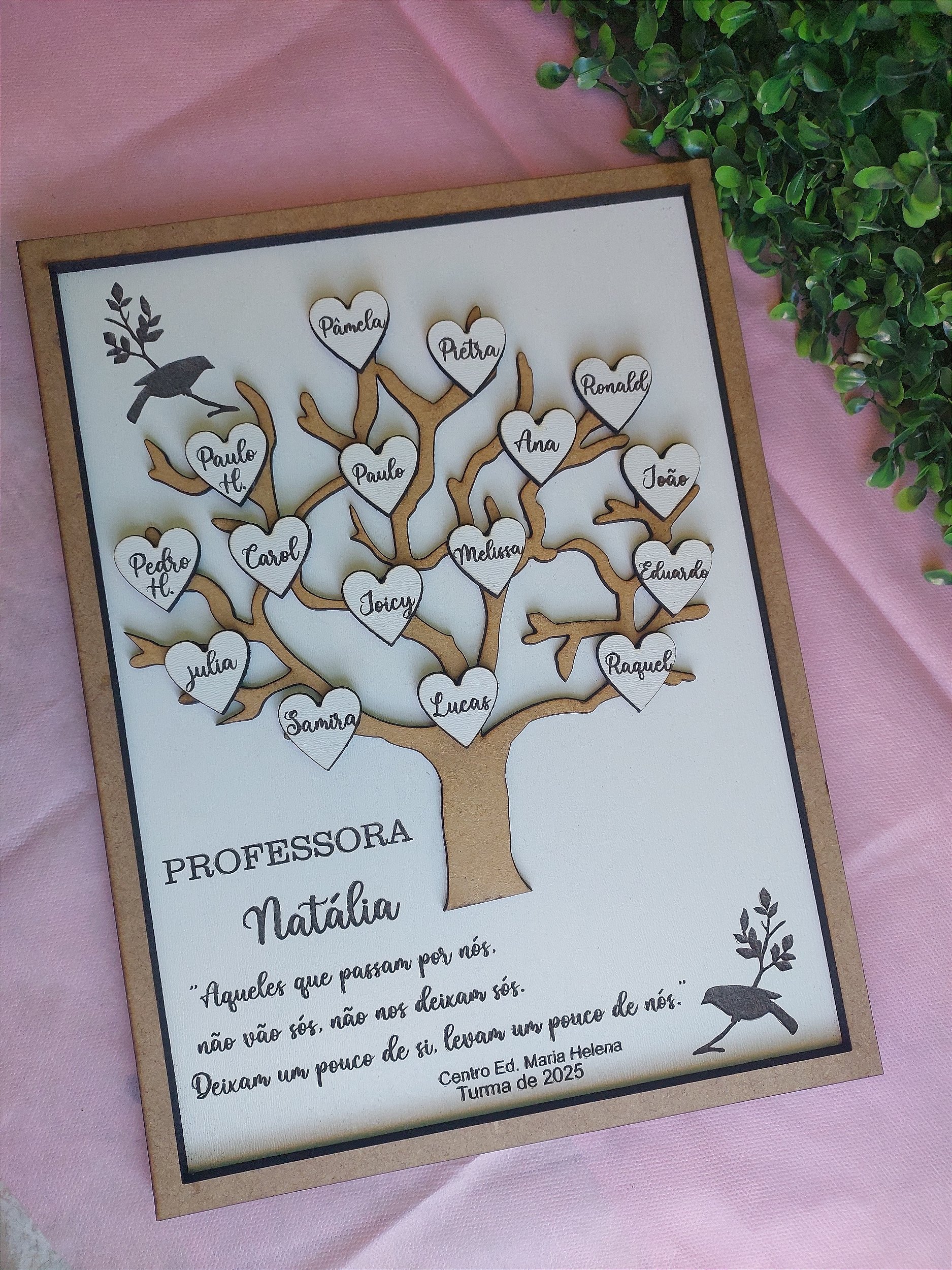 Quadro Personalizado com dedicatória para Professor em Mdf 3mm branco e mdf 6mm cru.